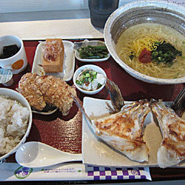 その他に、ラーメンorそば+小ご飯+選べるメイン料理(鯛のかま焼き、あじフライ、からあげあ)1600円というのもありました。