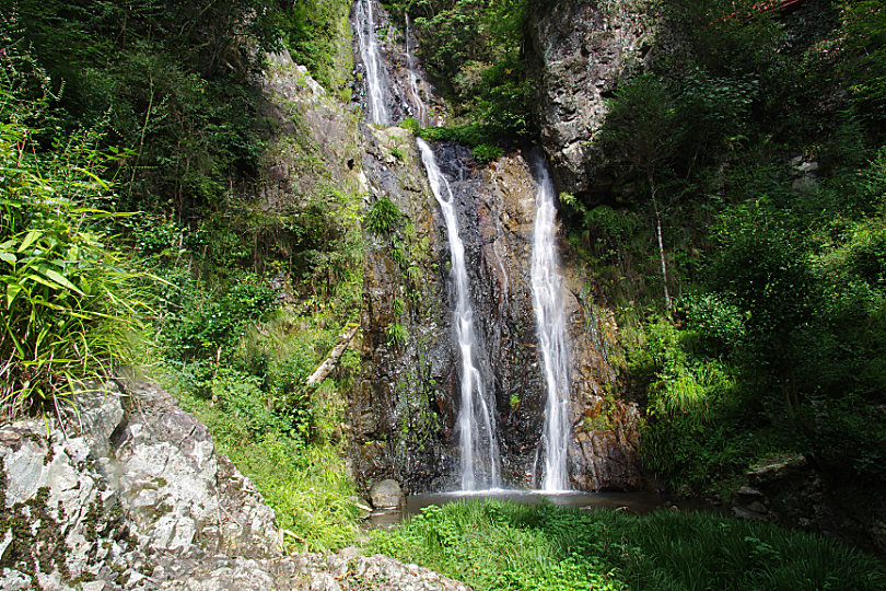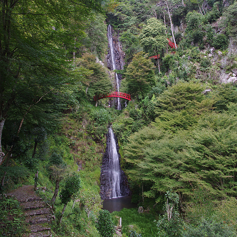 五宝滝(ごほうだき)は、岐阜県加茂郡八百津町にある5つの滝からなる景勝地で、全長80m三段の連瀑(一の滝、二の滝、三の滝)と、剣豪・宮本武蔵が修行したとされる伝説が残っている二天の滝、円明の滝の計5つの滝があり、1周できる遊歩道が整備されています。 特に秋の紅葉シーズンは美しいそうです。 8:50に「五宝滝」の駐車場に着きました。 土曜日ということもあってか駐車場は、すでに多くの自動車が入っていて、もう少し遅かったら、離れた場所にある駐車場に駐車しないといけなかったです。 「五宝滝」の駐車場にはトイレや案内地図の看板が設置されていました。 早朝なので開店していませんでしたが、数軒のお店もありました。 「五宝滝」は3段の滝(一の滝・二の滝・三の滝)が連なっていて、とても美しかったです。 撮影のベストポイントは三の滝から少し上った東屋(休憩所)のようでした、 急な階段が続きましたが、美しい景色に励まされ、それほど苦痛を感じなく、残りの2つの滝(円明の滝・二天の滝)も巡れました。 険しい道ではないですが登山靴か歩きやすい靴を履いていったほうが良いです。 1時間ちょっとで駐車場に戻ってこれました。 五宝滝の場所はこちら 岐阜県加茂郡八百津町八百津 |