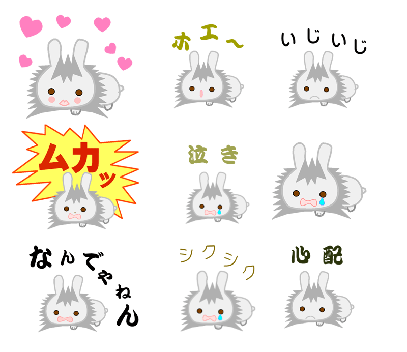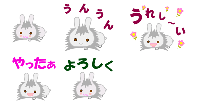 昔のペット(ウサギ)のイラストでの絵文字(リアクション)24枚セットを作り申請しました。