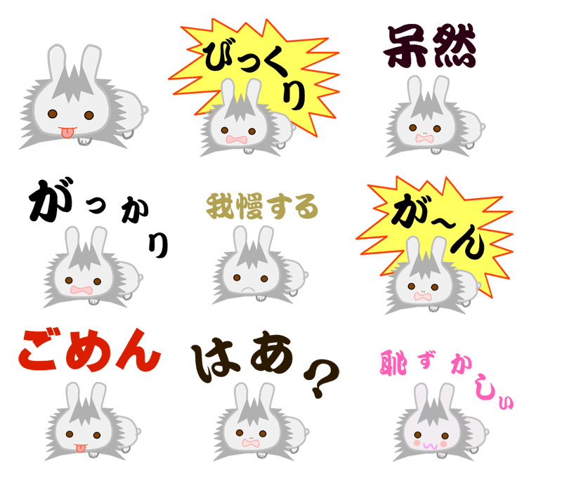 昔飼っていたライオンドワーフ(うさぎ)のスタンプ16種