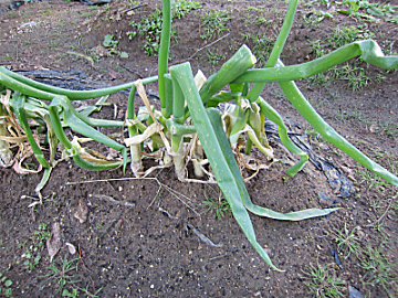 少し収穫したけど、青い部分は傷んでいるところが目立った。