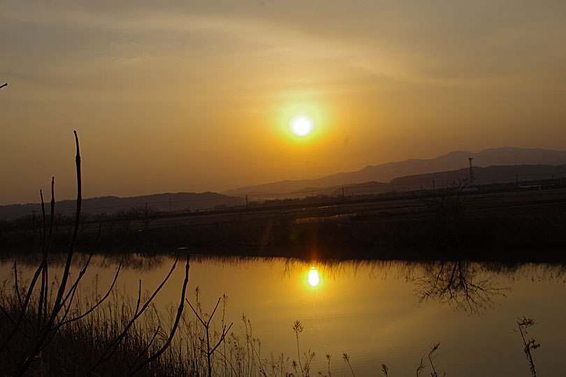 朝日は数枚だけ撮影して、もっと良い場所は無いかと河北潟沿いの道(才田大橋に向かう道路)に入ろうとしたら通行止めになっていました。地震の損傷がまだ残っているのかもしれません。)