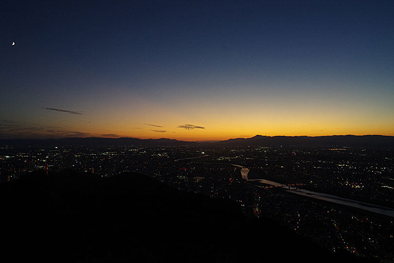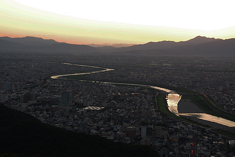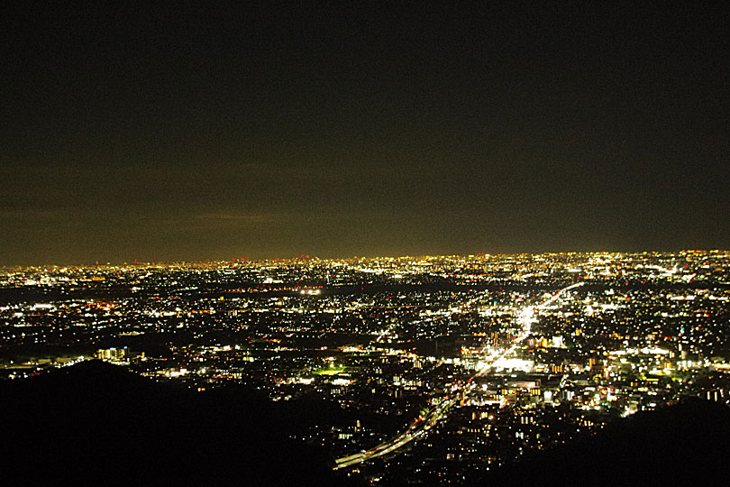 長良川や山、道路を走る自動車のライト、岐阜市街地の明かりなどがあり、絶景です。