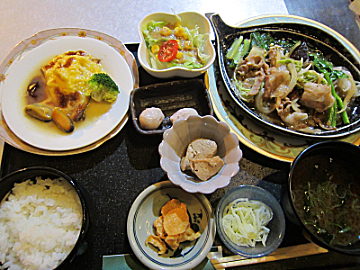 「酒津屋中店」では、メイン料理を13品から2品選べて990円というセレクトランチがあるのです。