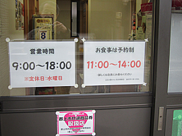 店頭に、食事は予約制11:00~14:00と掲示されていました。こりゃヤバイと感じでお店の人に聞いてみたのですが、やっぱりダメでした。