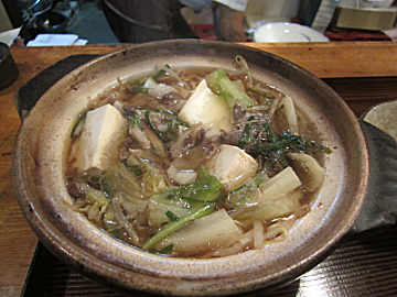 今日はジビエの鍋を食べようと思っていたので、ジビエの鍋はどれが一番おすすめですかと聞くと熊鍋(2300円)が一番人気があるということなので熊鍋を頼みました。追加300円でおじやもできるようです。