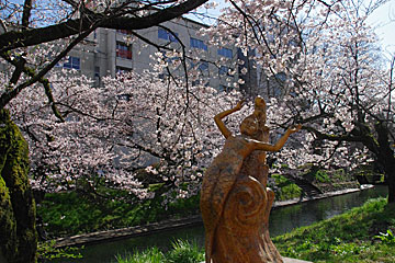 松川べりの桜の名所は富山城址公園や富山市役所に隣接しています。
