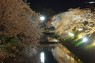 松川べりでは桜の季節はライトアップも行われています。