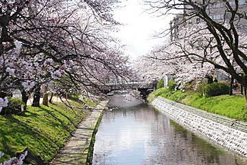 松川べりでは川沿いの両側が桜並木になっていて美しいです。